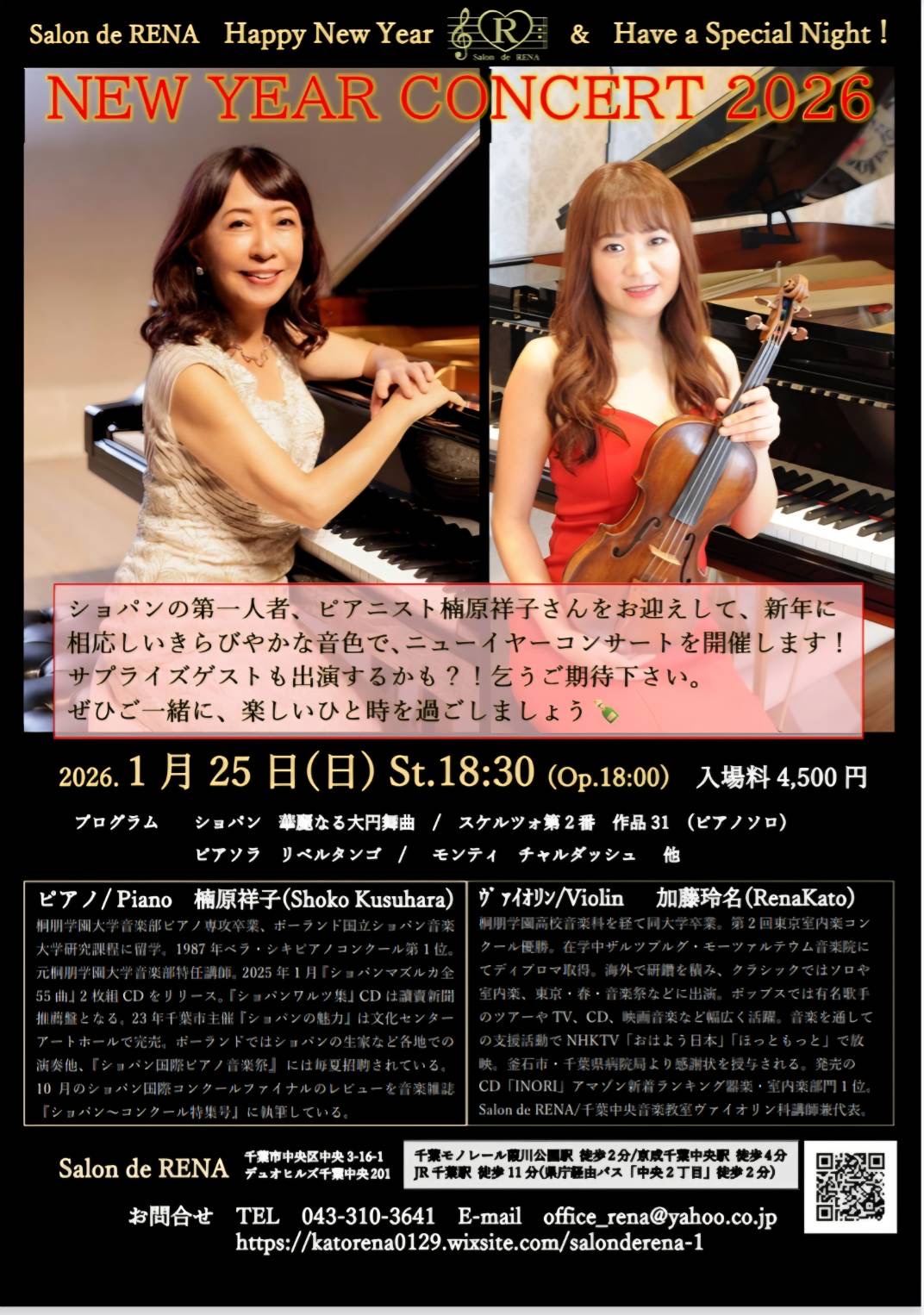 W.A.モーツァルト ヴァイオリン・ソナタ全曲演奏会(Vn.加藤玲名/Pf.平尾有衣)